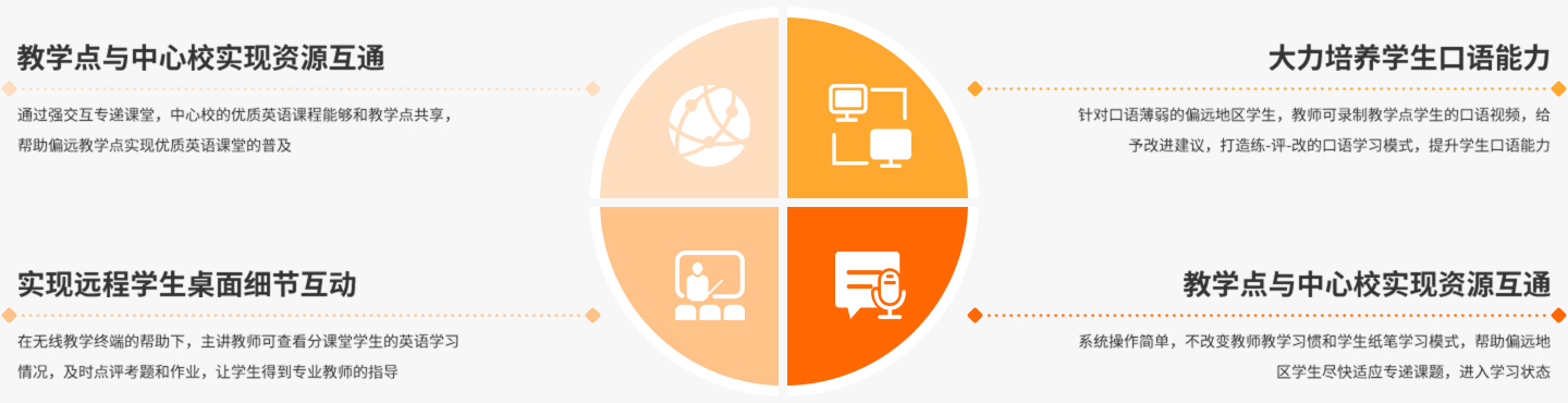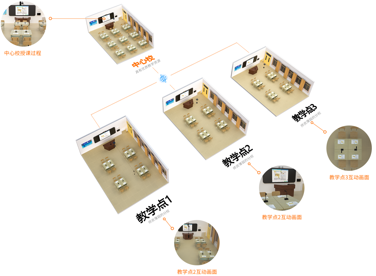 主課堂可任意調(diào)取主分課堂學(xué)生桌面畫面對比教學(xué),無需助教,不受距離空間限制,主分課堂共上一堂課,遠(yuǎn)程教學(xué)也能達(dá)至面對面的教學(xué)效果
