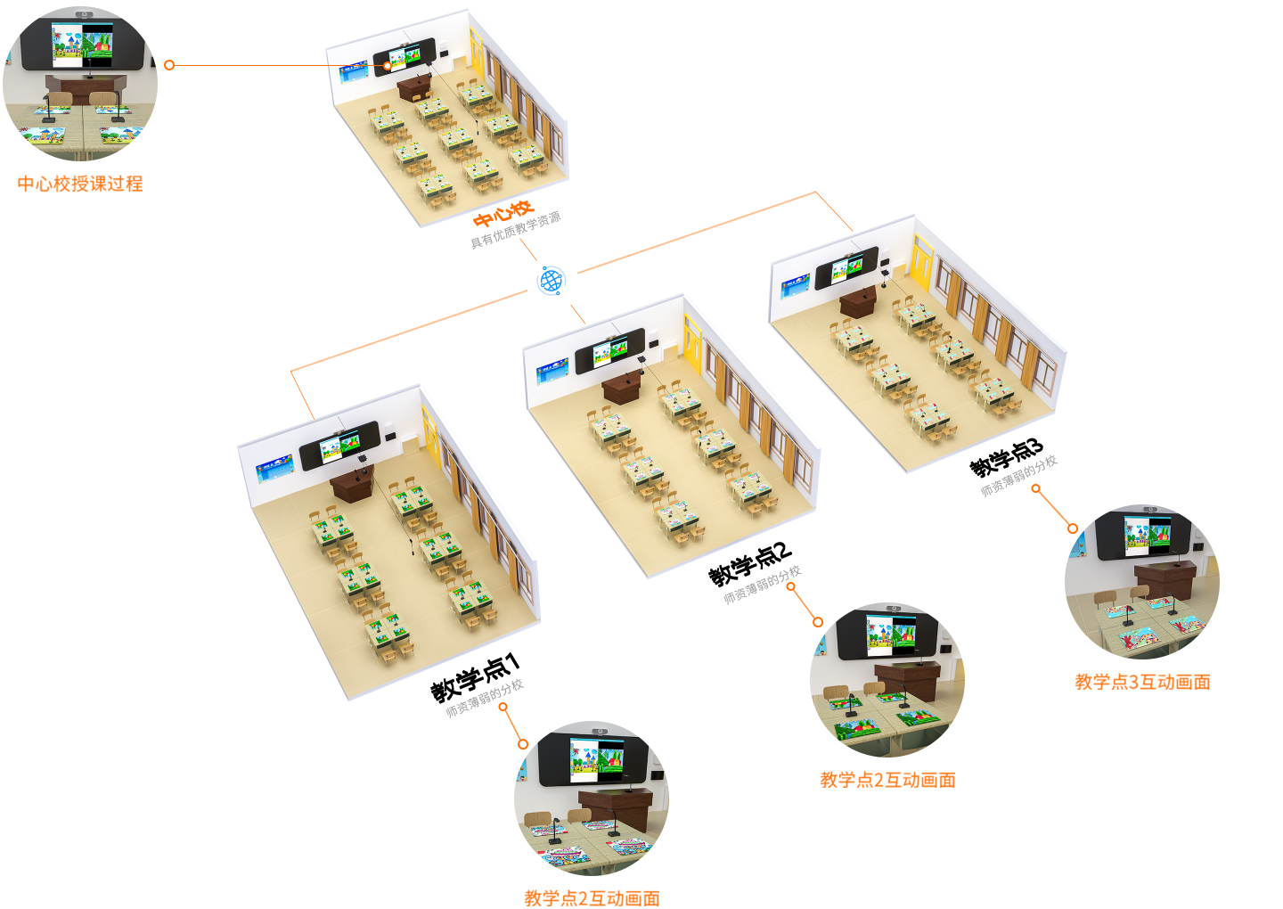 無(wú)需助教,主講教師可通過(guò)電腦或手機(jī)控制調(diào)取分課堂的多個(gè)畫面進(jìn)行對(duì)比教學(xué),實(shí)現(xiàn)遠(yuǎn)程互動(dòng)“面對(duì)面”。